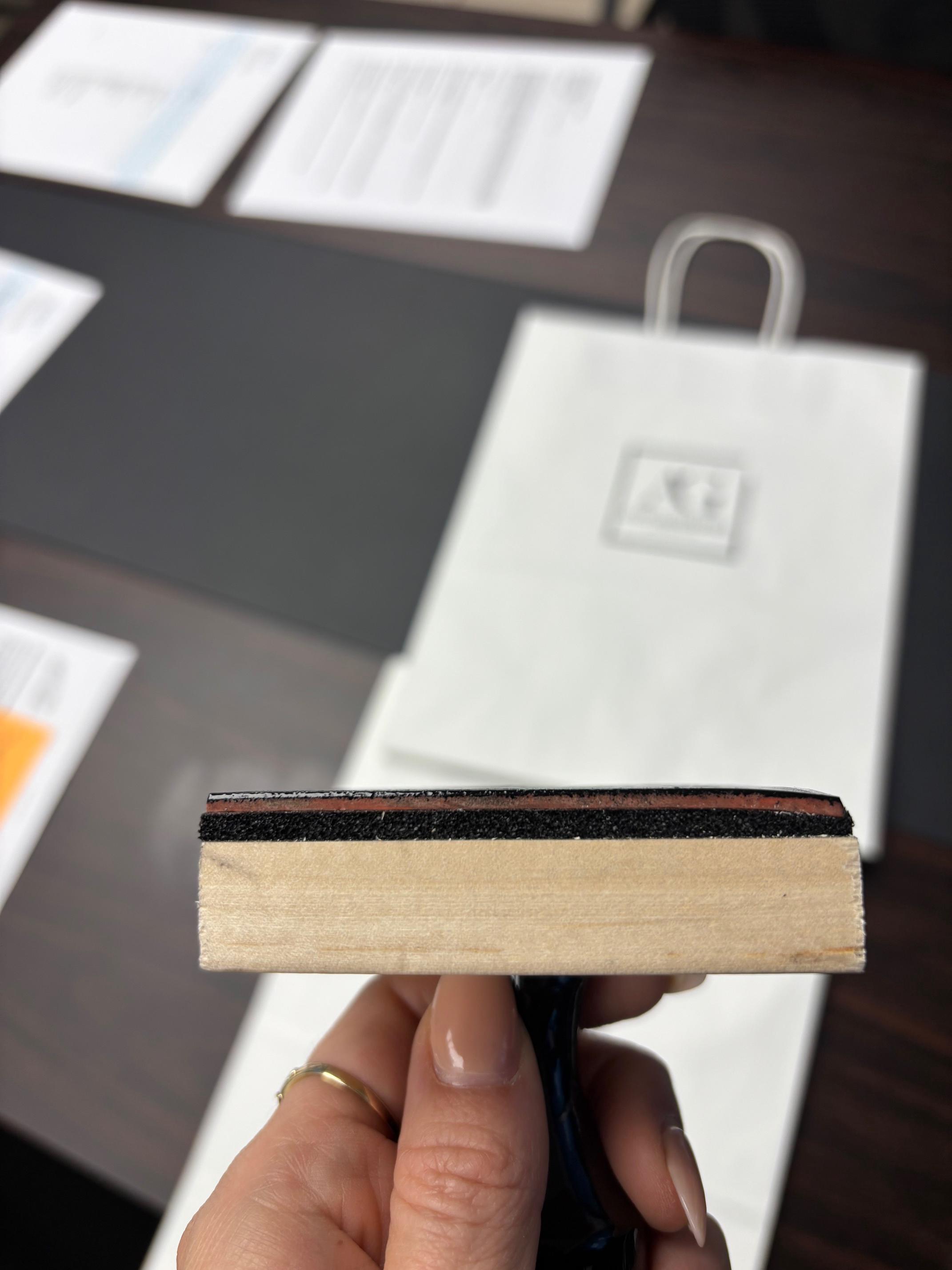 We recommend stamping onto a hard, flat surface. A lot of our customers are stamping onto paper bags, and for those, we recommend sliding a hard, flat item inside when stamping (like a hardcover book or cutting board). We also recommend pressing straight down on top of the stamp, as rocking it (unless it’s a rocker mount stamp) when using it can also cause the ink to get where it shouldn’t.