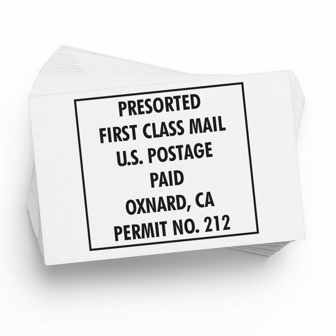 Using your permit information, update your No Postage Necessary Stamp’s design. Ensure the following text is visible:“No Postage Necessary If Mailed In The United States” or a similar approved phrasePermit numberMail class designator (if required)If you’re outsourcing this design, Acorn Stamps can finalize the artwork and guarantee it meets postal regulations.