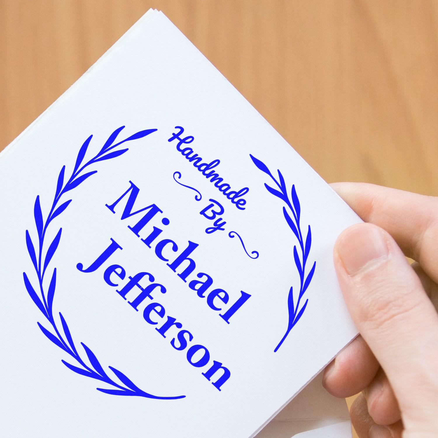 Absolutely. At Acorn Stamps, we specialize in custom made stamps and personalized options. While “Made with Love” is a popular choice, you can also add your name, your brand’s name, or other personalized text. Simply reach out with your design ideas or specific text, and we’ll help you create the perfect pre-inked stamp to suit your needs.