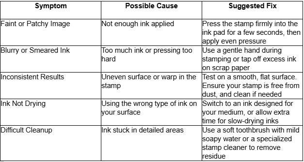 Like any craft tool, a custom stamp can present minor hiccups. Part of mastering your stamp involves recognizing these issues and knowing how to address them. Below is a quick reference table to help you troubleshoot common problems: