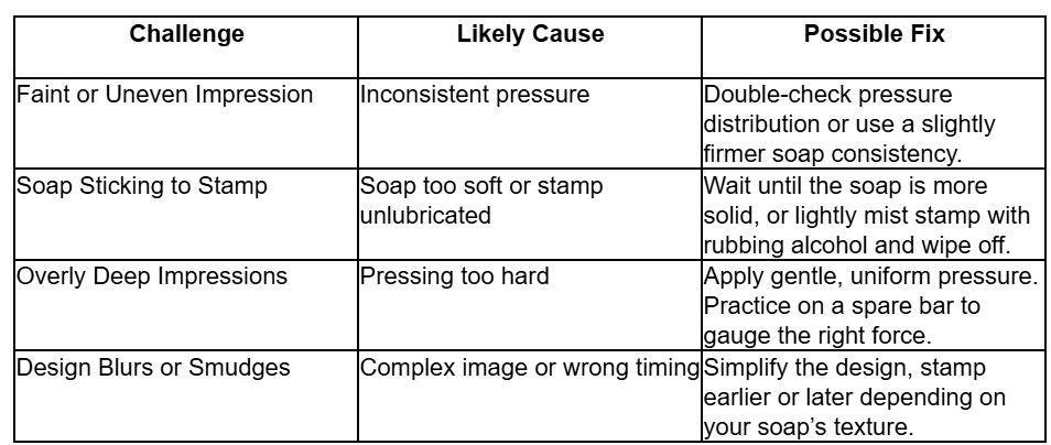 Even the most experienced soap makers encounter hiccups. Below are some common challenges you may face when using a soap made by stamp, along with simple ways to fix them.