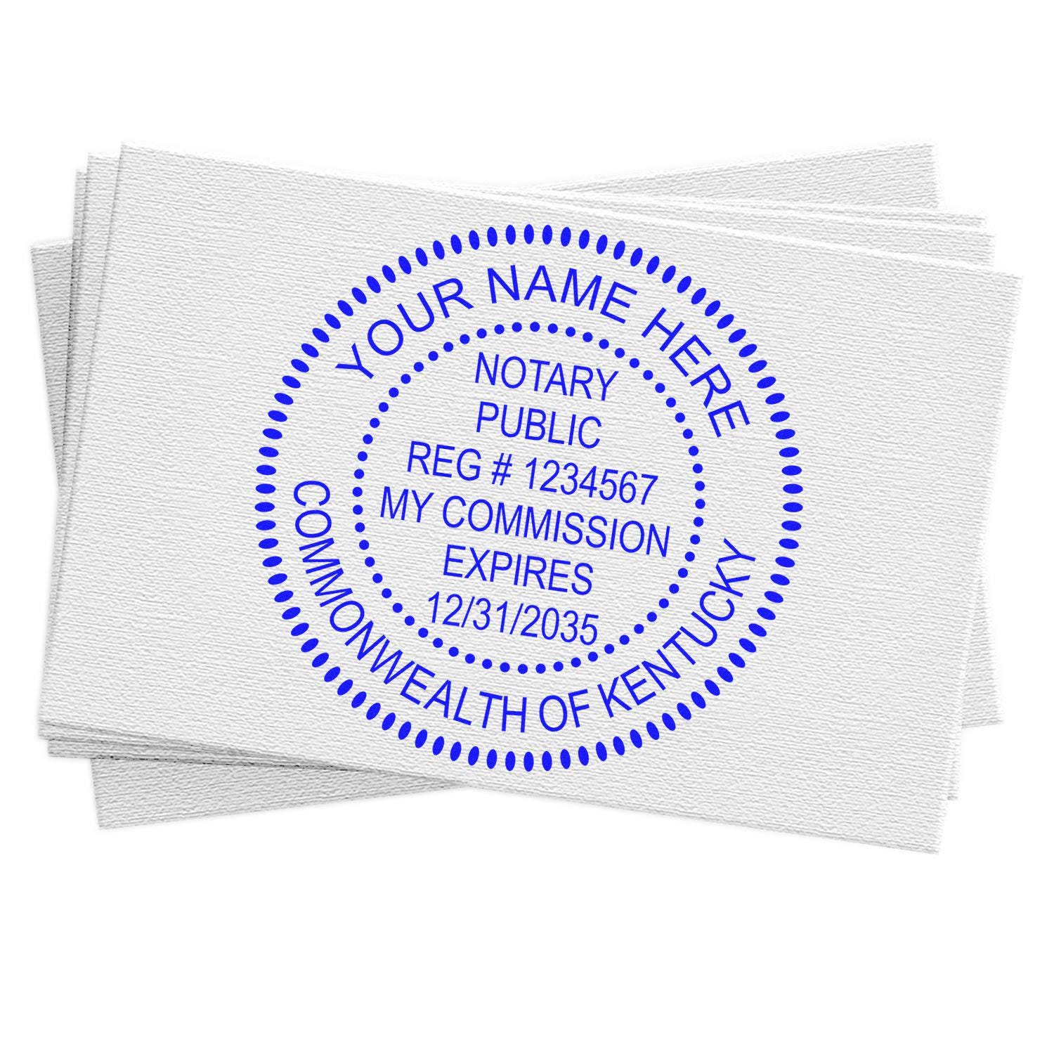 - Legal Text: In Kentucky, the stamp or seal should include your name as commissioned, the words “Notary Public,” and the words “State at Large” or your official county.