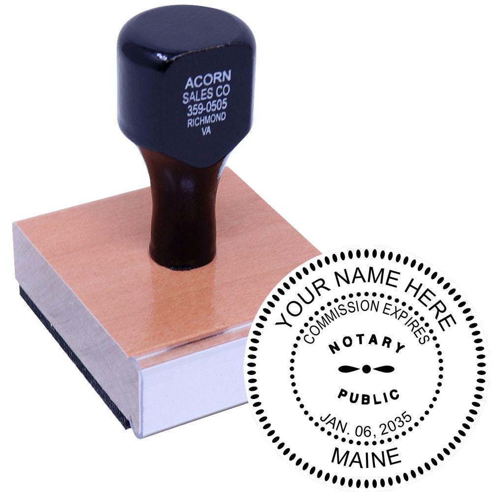 In Maine, notaries commonly use a rubber stamp or an embossed seal to authenticate documents. The stamp typically includes: