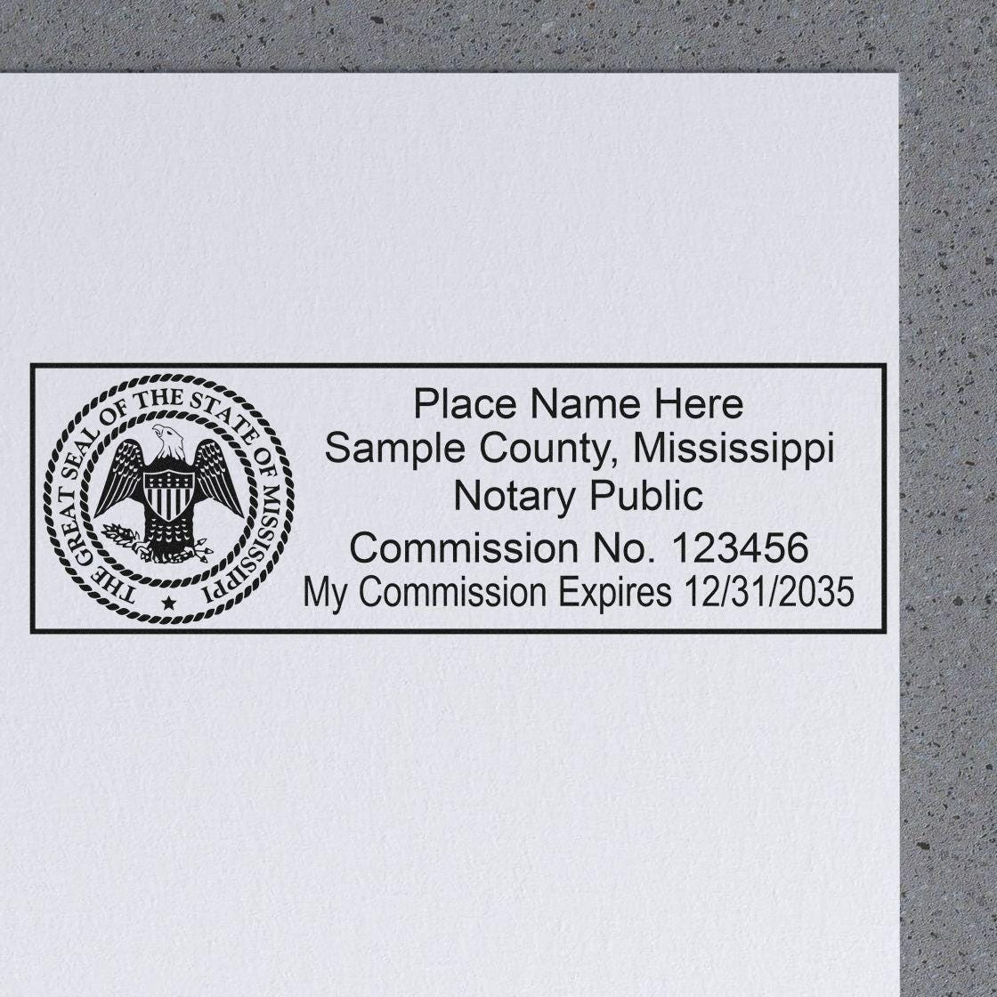 Yes. Mississippi typically accepts self-inking stamps as long as all required information is legible. Check your commission guidelines to confirm any specific design limitations that might apply in your region.